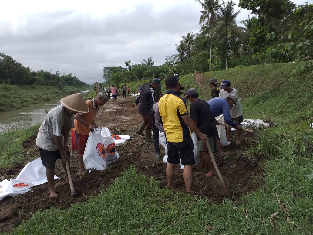 Kebumen ,Mediatajam. Com– Polres Kebumen menambah kekuatan untuk memperbaiki tanggul yang jebol di Sungai Kemit Desa Sekarteja, Senin (10/12).